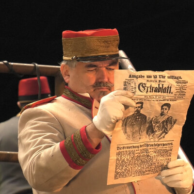 Rollen: Generalstabschef Hötzendorf, Kriegsberichterstatter, Niesse, Pogatschnigg (Cherusker), Offizier Novotny, Soldat Beinsteller, deutscher Kaiser Wilhelm II, Lebensmittelwucherer Vinzenz Chramosta