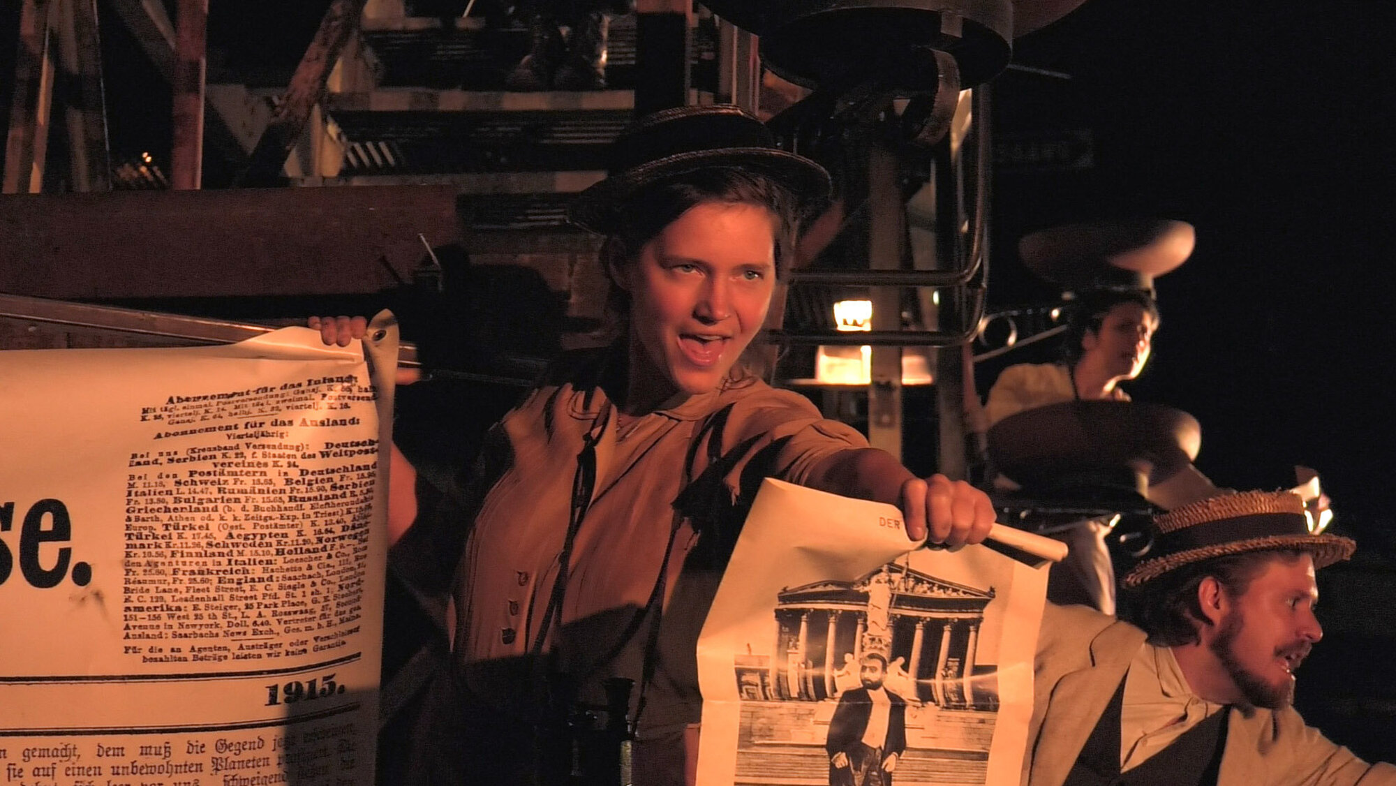 Bereits im Ersten Weltkrieg wurden bewusst Propaganda und populistische Parolen verwendet, um dadurch die Bevölkerung bei Kriegslaune zu halten. Susanne Greiner versucht beispielsweise in ihrer Rolle die Lebensmittelknappheit zu relativieren um das Volk einmal mehr zu mobilisieren.